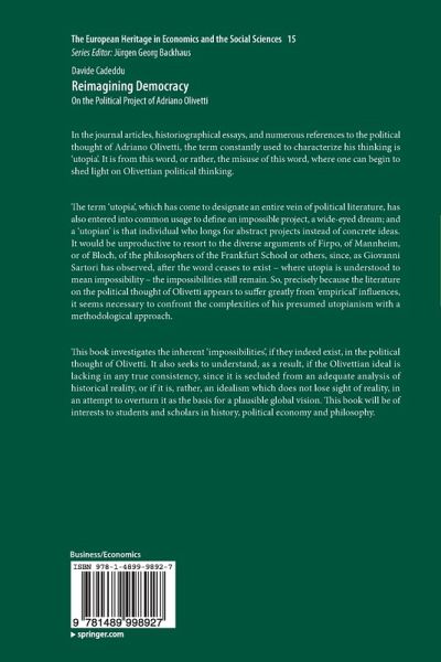 In the journal articles, historiographical essays, and numerous references to the political thought of Adriano Olivetti, the term constantly used to characterize his thinking is 'utopia'. It is from this word, or rather, the misuse of this word, where one can begin to shed light on Olivettian political thinking.The term 'utopia', which has come to designate an entire vein of political literature, has also entered into common usage to define an impossible project, a wide-eyed dream; and a 'utopian' is that individual who longs for abstract projects instead of concrete ideas. It would be unproductive to resort to the diverse arguments of Firpo, of Mannheim, or of Bloch, of the philosophers of the Frankfurt School or others, since, as Giovanni Sartori has observed, after the word ceases to exist - where utopia is understood to mean impossibility - the impossibilities still remain. So, precisely because the literature on the political thought of Olivetti appears to suffer greatly from 'empirical' influences, it seems necessary to confront the complexities of his presumed utopianism with a methodological approach.This book investigates the inherent 'impossibilities', if they indeed exist, in the political thought of Olivetti. It also seeks to understand, as a result, if the Olivettian ideal is lacking in any true consistency, since it is secluded from an adequate analysis of historical reality, or if it is, rather, an idealism which does not lose sight of reality, in an attempt to overturn it as the basis for a plausible global vision. This book will be of interests to students and scholars in history, political economy and philosophy.