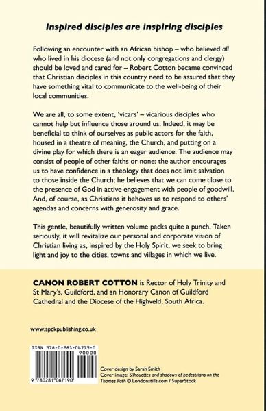 Following an encounter with an African bishop - who believed all who lived in his diocese (and not only congregations and clergy) should be loved and cared for - Robert Cotton became convinced that Christian disciples in this country need to be assured that they have something vital to communicate to the well-being of their local communities. We are all, to some extent, 'vicars' - vicarious disciples who cannot help but influence those around us. Indeed, it may be beneficial to think of ourselves as public actors for the faith, housed in a theatre of meaning, the Church, and putting on a divine play for which there is an eager audience. The audience may consist of people of other faiths or none: the author encourages us to have confidence in a theology that does not limit salvation to those inside the Church; he believes that we can come close to the presence of God in active engagement with people of goodwill. And, of course, as Christians it behoves us to respond to others' agendas and concerns with generosity and grace. This gentle, beautifully written volume packs quite a punch. Taken seriously, it will revitalize our personal and corporate vision of Christian living as, inspired by the Holy Spirit, we seek to bring light and joy to the cities, towns and villages in which we live.