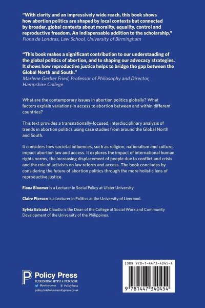 This book considers how societal influences, such as religion, nationalism and culture, impact abortion law and access. It provides an accessible, informative and engaging text for academics, policy makers and readers interested in abortion politics.