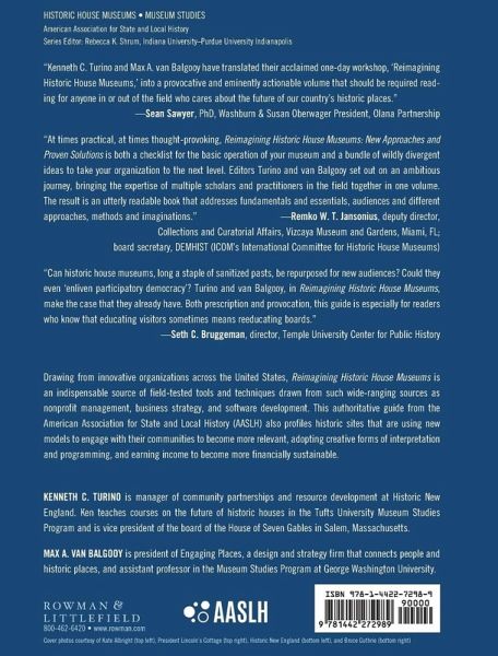 Since 2015, co-editors Kenneth C. Turino and Max A. van Balgooy have led the popular reinventing historic house workshop for the American Association for State and Local History. Kenneth C. Turino is Manager of Community Partnerships and Resource Development at Historic New England. He oversees community engagement projects throughout the New England states and is responsible for exhibition partnerships at the Eustis Estate, Langdon House, and Sarah Orne Jewett Museum and Visitor Center. He consults on interpretive planning and community engagement projects at historic sites, including Madame John's Legacy in New Orleans and the Palmer Warner House in Connecticut. Ken teaches courses on the future of historic houses in the Tufts University Museum Studies Program and is vice president of the board of the House of Seven Gables in Salem, Massachusetts. Max A. van Balgooy is president of Engaging Places, a design and strategy firm that connects people and historic places. For more than thirty years, he has worked with a wide range of historic sites on interpretive planning and business strategy, including Cliveden, Molly Brown House, Haas-Lilienthal House, James Madison's Montpelier, and Andrew Jackson's Hermitage. He is an assistant professor in the Museum Studies Program at George Washington University, directs the History Leadership Institute (formerly known as the Seminar for Historical Administration), and regularly leads workshops for the American Association for State and Local History.