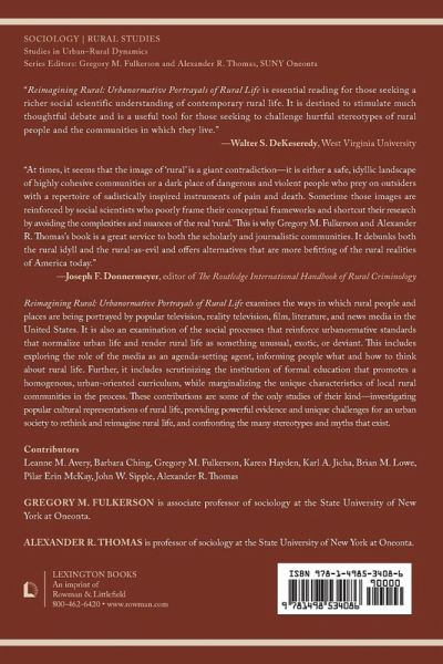 Chapter 1: Introduction: The Need to Reimagine Rural, Gregory M. Fulkerson & Alexander R. Thomas Part I: Popular Media Representations of Rural Chapter 2: Representations of Rural in Popular North American Television, Gregory M. Fulkerson & Brian M. Lowe Chapter 3: Portrayals of Rural People and Places in Reality Television Programming: How Popular American Cable Series Misrepresent Rural Realities, Karl A. Jicha Chapter 4: Inbred Horror Revisited: The Fear of the Rural in Twenty-First Century Backwoods Horror Films, Karen Hayden Chapter 5: Reconsidering the Rural in the End: Rural Representations in Post-Apocalyptic Settings, Brian M. Lowe Part II: The Sources of Rural Meaning and Knowledge Construction Chapter 6: Urbanormativity in News Coverage of Rural Life, Pilar Erin McKay Chapter 7: Cow College and Critical Rural Knowledge, Barbara Ching Chapter 8: Common Core, STEM, and Rural schools: Views from Students and States, Leanne M. Avery & John W. Sipple Chapter 9: Conclusion: Reimagining Rur