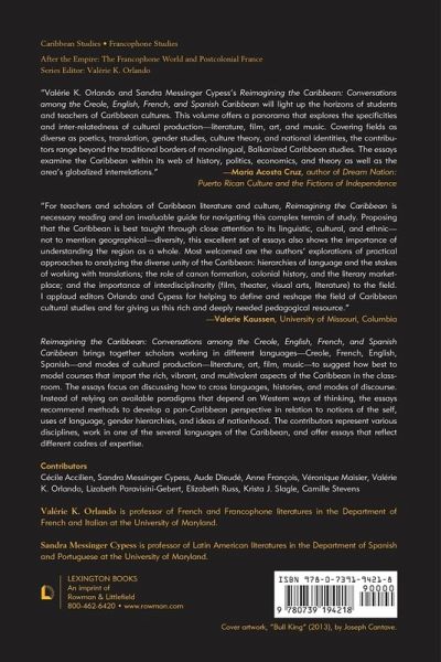 This volume brings together scholars working in different languages—Creole, French, English, Spanish—and modes of cultural production—literature, art, film, music—to suggest how best to model courses that impart the rich, vibrant, and multivalent aspects of the Caribbean in the classroom.