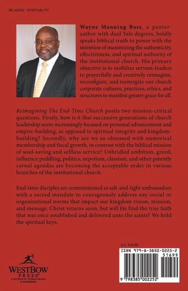 The pastor-author of Reimagining The End-Time Church boldly speaks biblical truth to power with the intention of maximizing the authenticity, effectiveness, and spiritual authority of the institutional church. His primary objective is to mobilize servant-leaders to prayerfully and creatively reimagine, reconfigure, and reenergize church corporate cultures, practices, ethics, and structures to manifest greater grace for all. Christ's end-time disciples are commissioned as salt-and-light ambassadors with a sacred mandate to courageously address any social or organizational norms that impact our kingdom vision, mission, and message. Unbridled ambition, greed, influence peddling, politics, nepotism, classism, and other patently carnal agendas are becoming the acceptable order in various branches of the institutional church. Christ returns soon, but will He find the true faith that was once established and delivered unto the saints? We hold the spiritual keys.