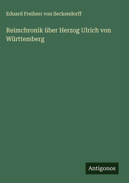 Unveränderter Nachdruck der Originalausgabe von 1863. Reimchronik über Herzog Ulrich von Württemberg Der Verlag Antigonos spezialisiert sich auf die Herausgabe von Nachdrucken historischer Bücher. Wir achten darauf, dass diese Werke der Öffentlichkeit in einem guten Zustand zugänglich gemacht werden, um ihr kulturelles Erbe zu bewahren.