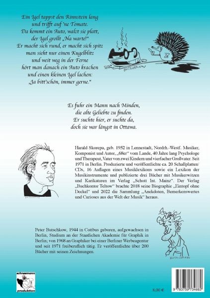 Harald Skorepa, geb. 1952 in Lennestadt, Nordrhein-Westfalen. Sohn, Musiker, Komponist und Texter, Sportler (Judo, Handball, Tauchen und anderes), "68er" vom Lande, 40 Jahre lang Psychologe und Therapeut, Vater von zwei Kindern und vierfacher Großvater (bisher). Seit 1971 in Berlin. Produzierte und veröffentlichte ca. 20 Schallplatten/CDs, 16 Auflagen eines Musiklexikon sowie ein Lexikon der Musikinstrumente und publizierte drei Bücher mit Musikerwitzen und Karikaturen im Verlag "Schott Int. Mainz". Der Verlag "Buchkontor Teltow" brachte 2018 seine Biographie "Eintopf ohne Deckel" sowie "Bemerkenswertes und Kurioses aus der Welt der Musik" heraus.