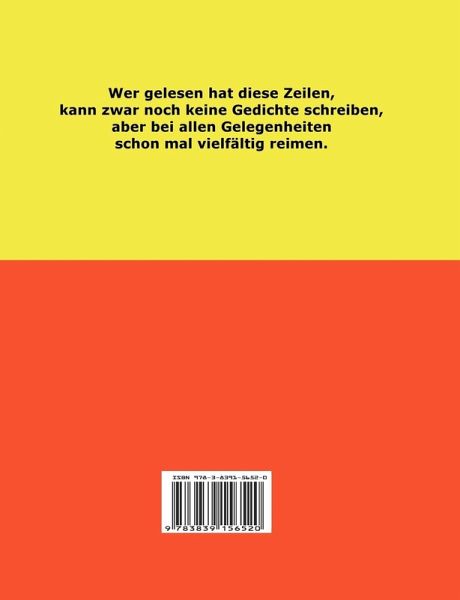 Wer gelesen hat diese Zeilen, kann zwar noch keine Gedichte schreiben, aber bei allen Gelegenheiten schon mal vielfältig reimen.