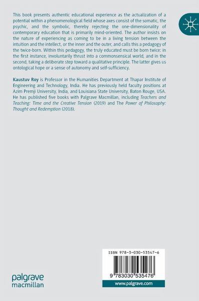 This book presents authentic educational experience as the actualization of a potential within a phenomenological field whose axes consist of the somatic, the psychic, and the symbolic, thereby rejecting the one-dimensionality of contemporary education that is primarily mind-oriented. The author insists on the nature of experiencing as coming to be in a living tension between the intuition and the intellect, or the inner and the outer, and calls this a pedagogy of the twice-born. Within this pedagogy, the truly educated must be born twice: in the first instance, involuntarily thrust into a commonsensical world, and in the second, taking a deliberate step toward a qualitative principle. The latter gives us ontological hope or a sense of autonomy and self-sufficiency.