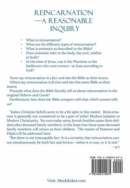 [NOTE: QPG Publications represent truth; and therefore are highly controversial. Should any book seller claim shipping time in excess of several days--probably be best to find another book seller.] Some say reincarnation is a fact, and cite the Bible as their source. Others say reincarnation is fiction, and cite this same Bible as their source. Precisely what does the Bible literally tell us about reincarnation in the original Hebrew and Greek? Furthermore; how does the Bible comport with that which science tells us? "Judeo-Christian beliefs seem to be a bit split in this matter. Reincarnation is generally not considered to be a part of either Modern Judaism or Modern Christianity. Yet even today many Jewish families name their children after deceased family members, in the hope that these same deceased family members will return as their children. The matter of Passover and Elijah will be addressed later. "But there is one inescapable fact: It is a certainty that reincarnation cannot simultaneously be both fact and fiction-either it is true, or it is not." -p.7 What does the Bible literally tell us about the status of the soul in the so called afterlife, and the potentials of the same? Written from an analytical and not an advocational perspective. The Bible has much to say about this subject.