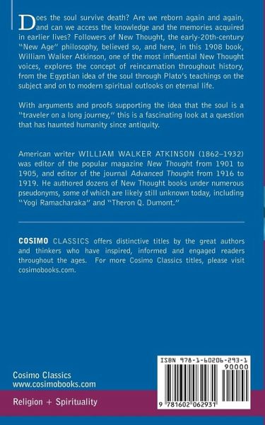 Does the soul survive death? Are we reborn again and again, and can we access the knowledge and the memories acquired in earlier lives? Followers of New Thought, the early-20th-century "New Age" philosophy, believed so, and here, in this 1908 book, William Walker Atkinson, one of the most influential New Thought voices, explores the concept of reincarnation throughout history, from the Egyptian idea of the soul through Plato's teachings on the subject and on to modern spiritual outlooks on eternal life. With arguments and proofs supporting the idea that the soul is a "traveler on a long journey," this is a fascinating look at a question that has haunted humanity since antiquity. American writer WILLIAM WALKER ATKINSON (1862-1932) was editor of the popular magazine New Thought from 1901 to 1905, and editor of the journal Advanced Thought from 1916 to 1919. He authored dozens of New Thought books under numerous pseudonyms, some of which are likely still unknown today, including "Yogi Ramacharaka" and "Theron Q. Dumont."