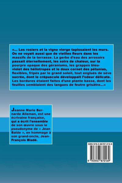 «... Les rosiers et la vigne vierge tapissaient les murs. On ne voyait aussi que de vieilles fleurs dans les massifs de la terrasse. La gerbe d’eau des arrosoirs passait éternellement, les soirs de chaleur, sur la pourpre opaque des géraniums, les grappes bleu-violet des héliotropes et le doux cornet des pétunias, flexibles, fripés par le grand soleil, tout englués de sève sucrée, dont le crépuscule développait l’odeur délicate. Les bordures étaient faites d’une plante basse, dont les feuilles semblaient des langues de feutre grisâtre...»
