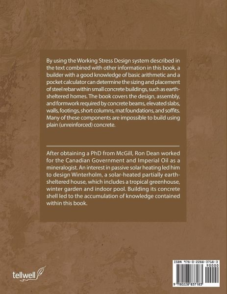 By using the Working Stress Design system described in the text combined with other information in this book, a builder with a good knowledge of basic arithmetic and a pocket calculator can determine the sizing and placement of steel rebar within small concrete buildings, such as earth-sheltered homes. The book covers the design, assembly, and formwork required by concrete beams, elevated slabs, walls, footings, short columns, mat foundations, and soffits. Many of these components are impossible to build using plain (unreinforced) concrete.