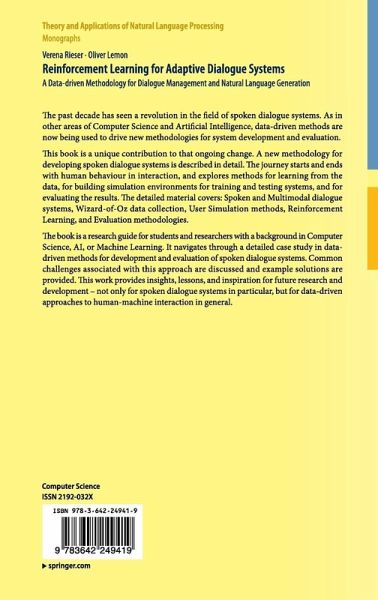 This book is a unique contribution to that ongoing change. A new methodology for developing spoken dialogue systems is described in detail. The journey starts and ends with human behaviour in interaction, and explores methods for learning from the data, for building simulation environments for training and testing systems, and for evaluating the results. The detailed material covers: Spoken and Multimodal dialogue systems, Wizard-of-Oz data collection, User Simulation methods, Reinforcement Learning, and Evaluation methodologies.