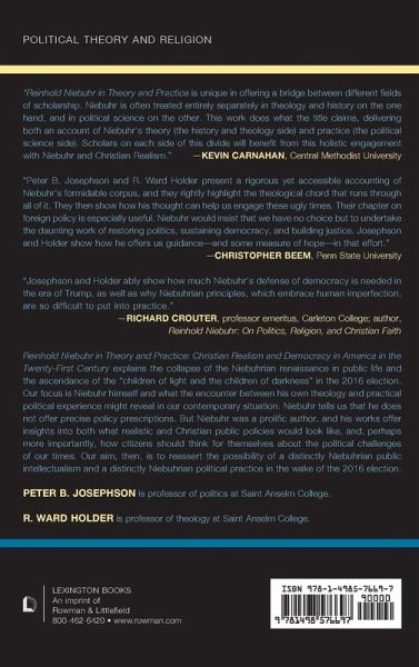 American public life is gripped by a tumult that it has not experienced in at least half a century. Resentment, distrust, despair, fear, envy, and outrage are the passions of the day. Yet it was not long ago that political scientists and theologians could speak of a "Niebuhr renaissance" marked by an appreciation of moral paradox, ethical nuance, and a recognition of the irony of American history. American political leaders from Barack Obama and Hillary Clinton to George Bush and John McCain referenced Reinhold Niebuhr as an important influence on their political understandings. Columnists like David Brooks commented on the political condition of contemporary America, and scholars from Gary Dorrien and Daniel Rice to Richard Crouter developed academic accounts of Niebuhr's political realism. From an insistence on political purity, to a wariness of international institutions and the claims of expertise, to a rejection of whole categories of public goods - it would be difficult to find a more significant shift from the principles that shaped statecraft and public policy during Niebuhr's prime to those that are foundational in the age of Trump. Reinhold Niebuhr in Theory and Practice: Christian Realism and Democracy in America in the Twenty-First Century explains the collapse of the Niebuhrian renaissance in public life and the ascendance of the "children of light and the children of darkness" in the 2016 election. Our focus is Niebuhr himself and what the encounter between his own theology and his practical political experience might reveal in our contemporary situation. Niebuhr tells us that he does not offer precise policy prescriptions. But Niebuhr was a prolific author, and his works offer insights both into what realistic and Christian public policies would look like, and perhaps more importantly into how citizens should think for themselves about the political challenges of our times. Our aim, then, is to reassert the possibility of a distinctly Niebuhrian public intellectualism and a distinctly Niebuhrian political practice in the wake of the 2016 election.
