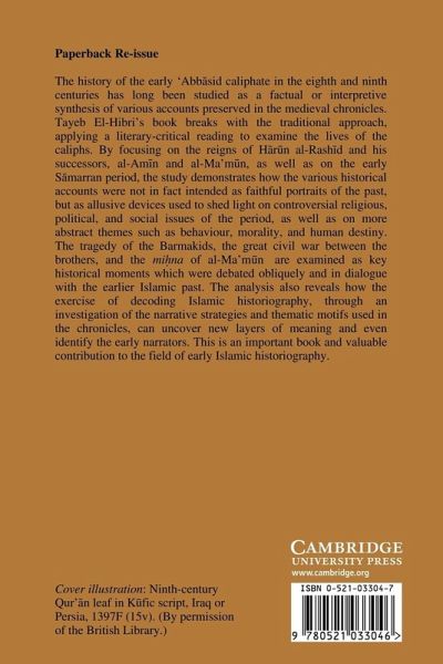 The history of the early 'Abbasid Caliphate has long been studied as a factual or interpretive synthesis of various accounts preserved in the medieval Islamic chronicles. Tayeb El-Hibri's book breaks with the traditional approach, applying a literary-critical reading to examine the lives of the caliphs. By focusing on the reigns of Harun al-Rashid and his successors, the study demonstrates how the various historical accounts were not in fact intended as faithful portraits of the past, but as allusive devices used to shed light on controversial religious, political and social issues of the period. The analysis also reveals how the exercise of decoding Islamic historigraphy, through an investigation of the narrative strategies and thematic motifs used in the chronicles, can uncover new layers of meaning and even identify the early narrators. This is an important book which represents a landmark in the field of early Islamic historiography.