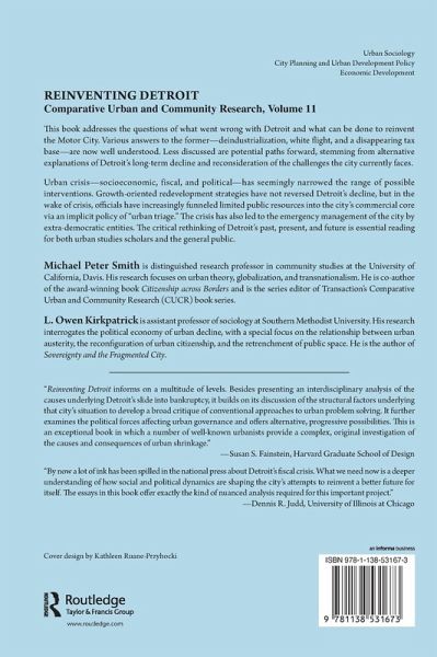 Introduction Reinventing Detroit: Urban Decline and the Politics of Possibility Michael Peter Smith and L. Owen Kirkpatrick Part I: Theoretical and Epistemological Frameworks 1 Rereading Detroit: Toward a Polanyian Methodology L. Owen Kirkpatrick and Michael Peter Smith 2 The Spontaneous Sociology of Detroit's Hyper-Crisis Mathieu Hikaru Desan and George Steinmetz 3 Learning from Detroit: How Research on a Declining City Enriches Urban Studies Margaret Dewar, Matthew Weber, Eric Seymour, Meagan Elliott, and Patrick Cooper-McCann Part II: How we Got Here: Cities, the State, and Markets 4 National Urban Policy and the Fate of Detroit William K. Tabb 5 The Normalization of Market Fundamentalism in Detroit: The Case of Land Abandonment Jason Hackworth Part III: W here we Are: Fiscal Crisis, Local Democracy, and Neoliberal Austerity 6 Detroit in Bankruptcy Reynolds Farley 7 Democracy vs. Efficiency in Detroit John Gallagher 8 Ritual and Redistribution in De-democratized Detroit L. Owen Kirkpatrick 9 Framing Detroit Jamie Peck Part IV: Where we Are Going: Pitfalls and Possibilities 10 Detroit Prospects: Why Recovery is Elusive Peter Eisinger 11 A Community Wealth-Building Vision for Detroit and Beyond Gar Alperowitz and Steve Dubb 12 The Cooperative City: New Visions for Urban Futures David Fasenfest 13 Which Way, "Detroit"? Peter Marcuse About the Contributors Index