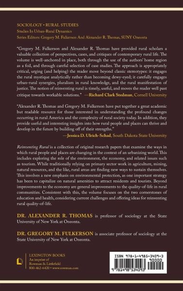 Part I. Cautionary Tales and the Costs of Traditional Rural Development 1. The Need to Reinvent Rural, Alexander R. Thomas and Gregory Fulkerson 2. Urban Dependency and Urbanormativity, Alexander R. Thomas 3. The Rural Mystique in American Society, Fern K. Willits, Gene L. Theodori, and Michael W.P. Fortunato 4. Reinventing Rural Environmental Justice, Laura McKinney 5. Urbanization, Land Use, and Environmental Change: A Sociological Perspective, Matthew Clement 6. Centralia, Pennsylvania: Disaster or Apathy? Carrie L. Kane and Alexander R. Thomas Part II. Reinventing Rural in an Urbanizing World 7. Rural Economic Vitality, Gregory Fulkerson and Alexander R. Thomas 8. Build it and They Will Come? The EB-5 Immigrant Investor Program and Jay Peak Resort, Aimee Vieira 9. What do They Do up There? A Look at Two Non-Metropolitan Counties in New York State, Stephanie Bennett 10. Reframing Rural Education: Implications of the Rural Mystique and its Absence in Educational Policy, Leanne M. Avery and Michael W.P. Fortunato Chapter 11. Doggonit, People Live Here! The Unmet Challenges of Rural Behavioral Health, James Zians 12. Conclusion: Reinventing Rural Revisited, Gregory Fulkerson and Alexander R. Thomas