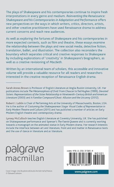 "As demonstrated by the nineteen uniformly accessible essays collected in Reinventing the Renaissance, Shakespeare lives on in more genres, media and cultures than ever before, some familiar (like the novel and film), some new (like the graphic novel and fanvid)." - Times Literary Supplement