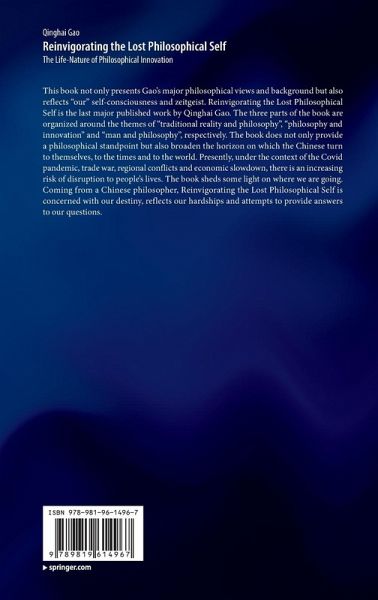 This book not only presents Gao's major philosophical views and background but also reflects "our" self-consciousness and zeitgeist. Reinvigorating the Lost Philosophical Self is the last major published work by Qinghai Gao. The three parts of the book are organized around the themes of "traditional reality and philosophy", "philosophy and innovation" and "man and philosophy", respectively. The book does not only provide a philosophical standpoint but also broaden the horizon on which the Chinese turn to themselves, to the times and to the world. Presently, under the context of the Covid pandemic, trade war, regional conflicts and economic slowdown, there is an increasing risk of disruption to people's lives. The book sheds some light on where we are going. Coming from a Chinese philosopher, Reinvigorating the Lost Philosophical Self is concerned with our destiny, reflects our hardships and attempts to provide answers to our questions.