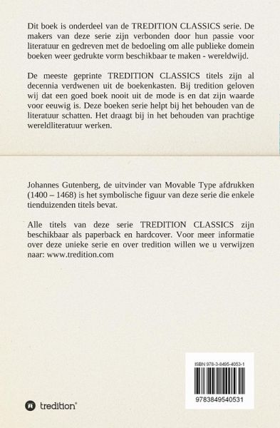 Dit boek is onderdeel van de TREDITION CLASSICS serie. De makers van deze serie zijn verbonden door hun passie voor literatuur en gedreven met de bedoeling om alle publieke domein boeken weer gedrukte vorm beschikbaar te maken - wereldwijd. De meeste geprinte TREDITION CLASSICS titels zijn al decennia verdwenen uit de boekenkasten. Bij tredition geloven wij dat een goed boek nooit uit de mode is en dat zijn waarde voor eeuwig is. Deze boeken serie helpt bij het behouden van de literatuur schatten. Het draagt bij in het behouden van prachtige wereldliteratuur werken.