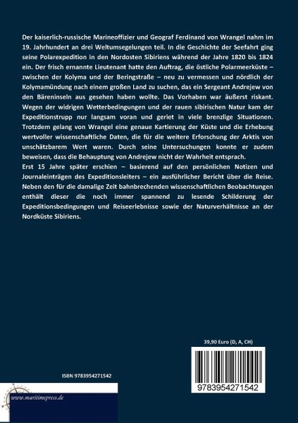 Der kaiserlich-russische Marineoffizier und Geograf Ferdinand von Wrangel nahm im 19. Jahrhundert an drei Weltumsegelungen teil. In die Geschichte der Seefahrt ging seine Polarexpedition in den Nordosten Sibiriens während der Jahre 1820 bis 1824 ein. Der frisch ernannte Lieutenant hatte den Auftrag, die östliche Polarmeerküste zwischen der Kolyma und der Beringstraße neu zu vermessen und nördlich der Kolymamündung nach einem großen Land zu suchen, das ein Sergeant Andrejew von den Bäreninseln aus gesehen haben wollte. Das Vorhaben war äußerst riskant. Wegen der widrigen Wetterbedingungen und der rauen sibirischen Natur kam der Expeditionstrupp nur langsam voran und geriet in viele brenzlige Situationen. Trotzdem gelang von Wrangel eine genaue Kartierung der Küste und die Erhebung wertvoller wissenschaftliche Daten, die für die weitere Erforschung der Arktis von unschätzbarem Wert waren. Durch seine Untersuchungen konnte er zudem beweisen, dass die Behauptung von Andrejew nicht der Wahrheit entsprach.