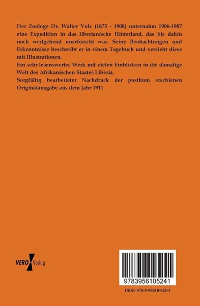Der Zoologe Dr. Walter Volz (1875 - 1908) unternahm 1906-1907 eine Expedition in das liberianische Hinterland, das bis dahin noch weitgehend unerforscht war. Seine Beobachtungen und Erkenntnisse beschreibt er in einem Tagebuch und versieht diese mit Illustrationen.