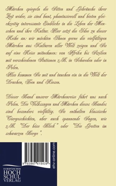 Dieser Band unserer Märchenreise führt uns nach Polen. Die Volkssagen und Märchen dieses Bandes sind besonders vielfältig. Sie enthalten klassische Tiergeschichten, aber auch spannende Sagen, wie z.B. "Der böse Blick" oder "Die Grotten im schwarzen Berge".