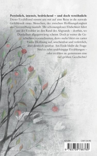 Persönlich, intensiv, bedrückend - und doch versöhnlich: Dieser Erzählband nimmt uns mit auf eine Reise in die surreale Gefühlswelt eines Menschen, der zwischen Hoffnungslosigkeit und Verzweiflung taumelt. Mit schonungsloser Ehrlichkeit führt uns der Erzähler an den Rand des Abgrunds - dorthin, wo Dunkelheit allgegenwärtig scheint. Doch je weiter die Geschichten voranschreiten, desto mehr blitzt ein zarter Funke Hoffnung auf, unscheinbar und verletzlich, aber dennoch spürbar. Am Ende bleibt die Frage: Sind es zehn unabhängige Erzählungen - oder erzählen sie gemeinsam eine viel größere Geschichte?