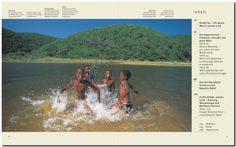 Über 180 Bilder zeigen Südafrika in all seiner Vielfalt und vier Specials berichten über Nelson Mandela, der sein Leben dem Widerstand gegen die Apartheid gewidmet hat, über den erstklassigen südafrikanischen Wein, mächtige Könige und unerschrockene Krieger der alten Stämme und die unverfälschte Natur des Kruger National Parks.