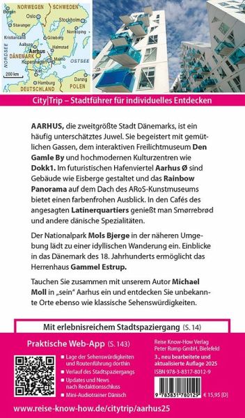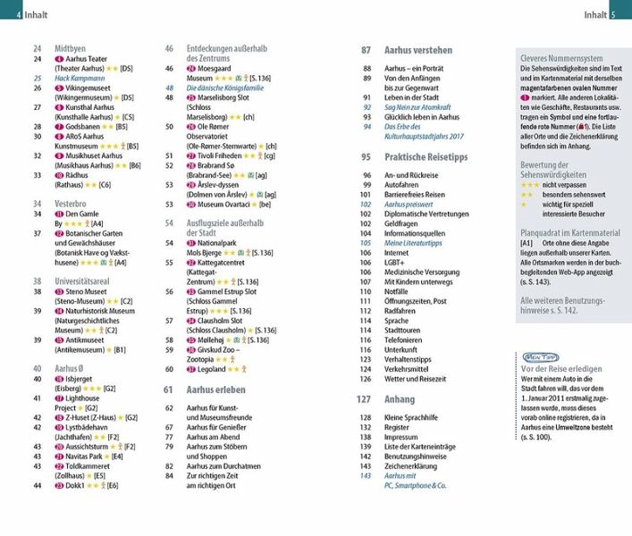 Dazu: kostenlose Web-App für Smartphone, Tablet und PC mit Stadtplan- und Satellitenansichten passend zum Text, Routenführung zu allen beschriebenen Sehenswürdigkeiten, Verlauf des Stadtspaziergangs, seitenbezogenen Updates nach Redaktionsschluss sowie einem Mini-Audiotrainer Dänisch