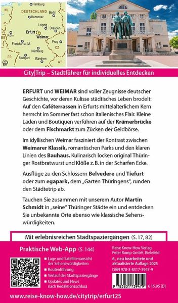 Dazu: kostenlose Web-App für Smartphone, Tablet und PC mit Stadtplan- und Satellitenansichten passend zum Text, Routenführung zu allen beschriebenen Sehenswürdigkeiten, Verlauf der Stadtspaziergänge, seitenbezogenen Updates nach Redaktionsschluss