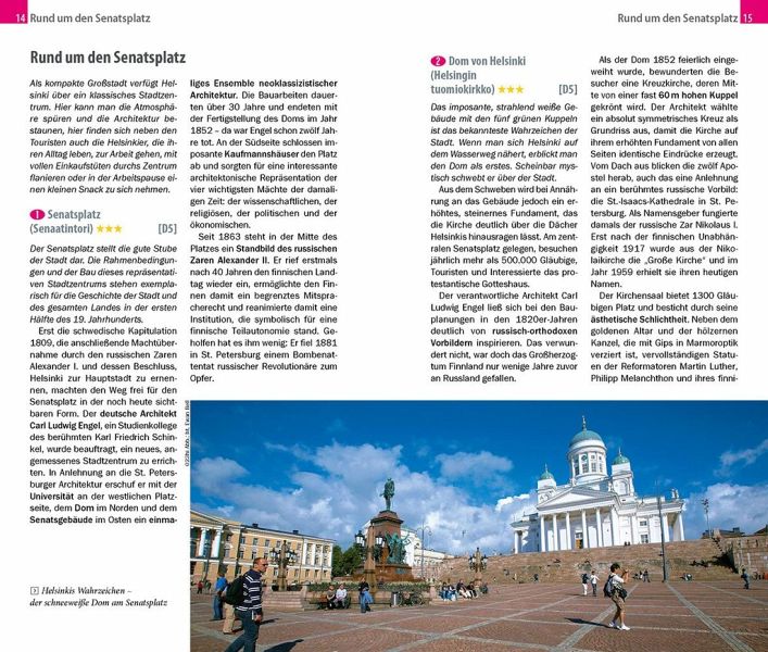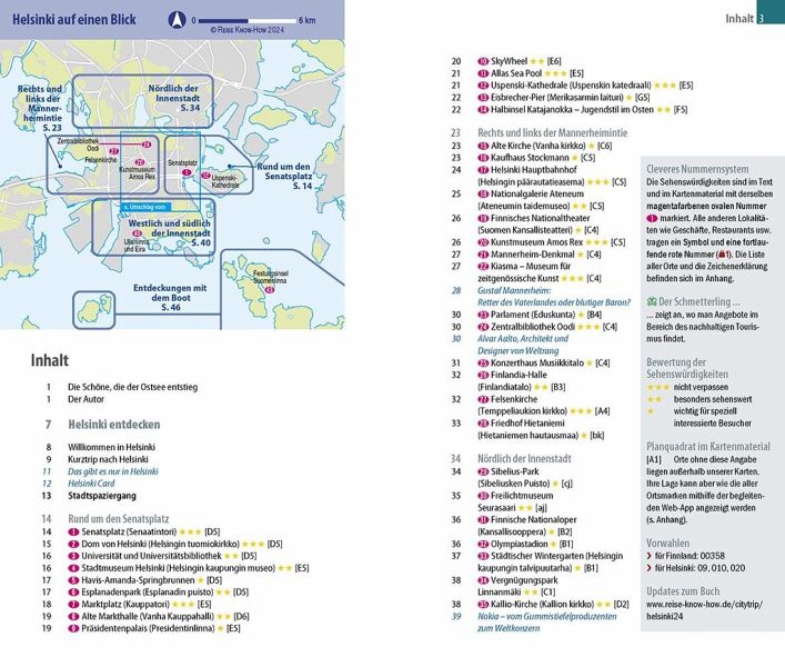 Dazu: kostenlose Web-App für Smartphone, Tablet und PC mit Stadtplan- und Satellitenansichten passend zum Text, Routenführung zu allen beschriebenen Sehenswürdigkeiten, Verlauf des Stadtspaziergangs, seitenbezogenen Updates nach Redaktionsschluss sowie einem Mini-Audiotrainer Finnisch