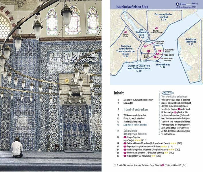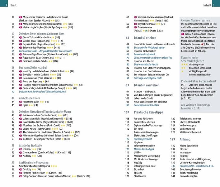 Dazu: kostenlose Web-App für Smartphone, Tablet und PC mit Stadtplan- und Satellitenansichten passend zum Text, Routenführung zu allen beschriebenen Sehenswürdigkeiten, Verlauf des Stadtspaziergangs, seitenbezogenen Updates nach Redaktionsschluss sowie einem Mini-Audiotrainer Türkisch