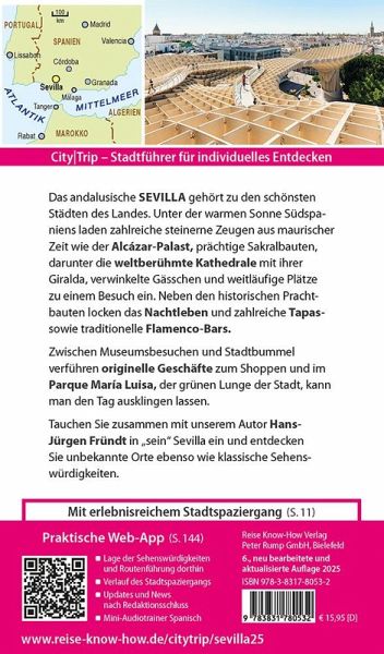 Dazu: kostenlose Web-App für Smartphone, Tablet und PC mit Stadtplan- und Satellitenansichten passend zum Text, Routenführung zu allen beschriebenen Sehenswürdigkeiten, Verlauf des Stadtspaziergangs, seitenbezogenen Updates nach Redaktionsschluss sowie einem Mini-Audiotrainer Spanisch