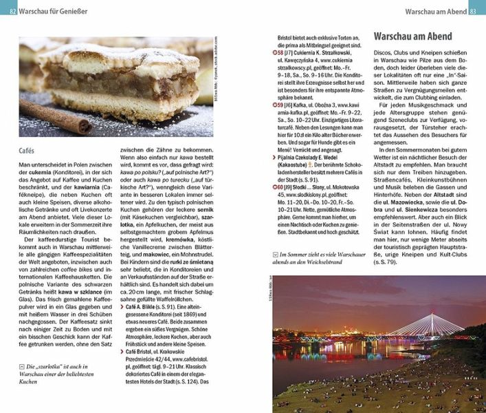 Warschau ist eine der führenden und aufregendsten Großstädte Osteuropas und lebt vom Charme des Widersprüchlichen. Hier trifft Hightech-Architektur auf sozialistische Monumentalbauten, eine traditionsreiche Altstadt auf junge Kunst, angesagte Clubs und moderne Einkaufspassagen. Zudem kann man an jeder Ecke hautnah die bewegte Geschichte der Stadt erleben. Überall ist der Wandel zu spüren, der die polnische Hauptstadt in den letzten Jahrzehnten so sehr verändert hat, dass man die Weichselmetropole kaum wiedererkennt, wenn man sie ein paar Jahre nicht besucht hat. Das gilt nicht nur für die Innenstadt, sondern auch für von Touristen weniger stark frequentierte Bezirke wie das aufstrebende Praga.