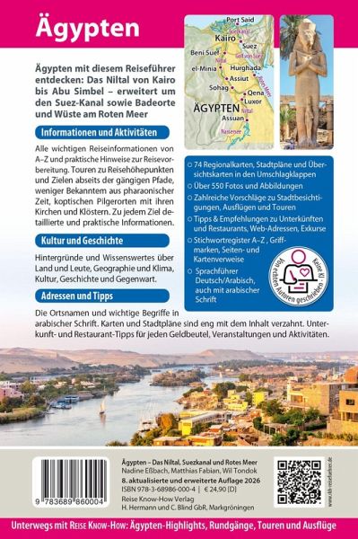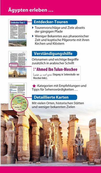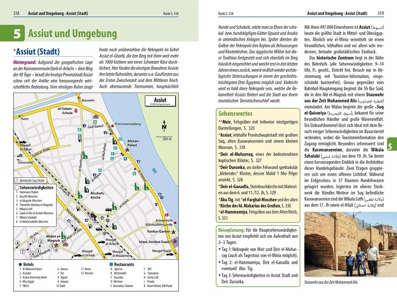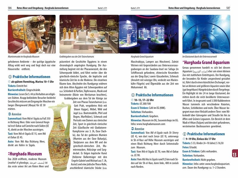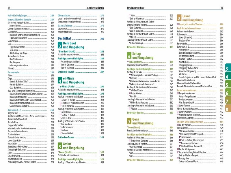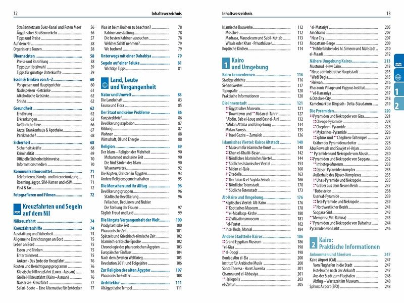 - Umfassende Beschreibungen aller wichtigen Regionen: Von Kairo und Gizeh über Mittel- und Oberägypten bis Abu Simbel, den Suez-Kanal und die Küstenstädte am Roten Meer wie Hurghada und Marsa Alam