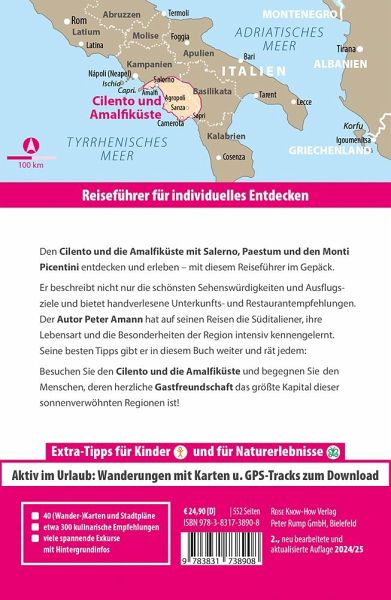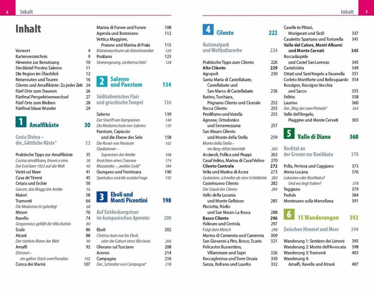 Dieser Reiseführer Cilento und Amalfiküste handelt vom Golf von Salerno, obwohl er im Titel nicht erwähnt wird. Vielen ist der Golf von Neapel bekannt, doch auch die sich südlich anschließende, weitaus größere Meeresbucht ist ein lohnendes Reiseziel. Drei unterschiedliche Küstenlandschaften öffnen sich zum Golf von Salerno. Kaum einer Vorstellung bedarf die weltberühmte Amalfiküste, raubt sie doch jedem den Atem: den Betrachtern vor Begeisterung und den Autofahrern vor Aufregung. Maurische Architektur prägt die Orte und auch der Zitronenanbau auf terrassierten Hängen ist Frucht eines intensiven Kulturaustauschs mit dem Orient. Ein gut unterhaltenes Netz alter Wirtschaftswege durchzieht das gebirgige Hinterland und zeigt sich heute als Wandernetz zwischen Himmel und Meer. Die UNESCO hat dieses harmonische Miteinander von Kultur und Natur zum Welterbe erklärt. Doch die Amalfitana besitzt noch viele weitgehend unbekannte Facetten, die es zu entdecken gilt.