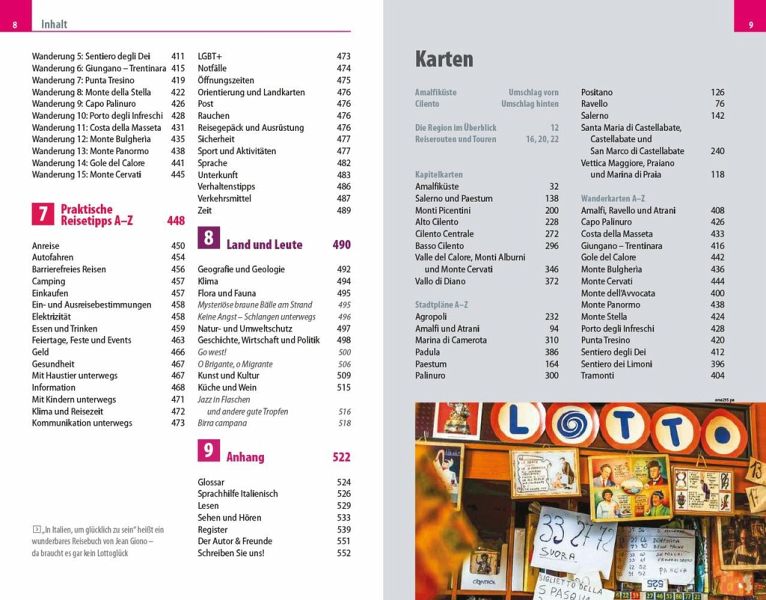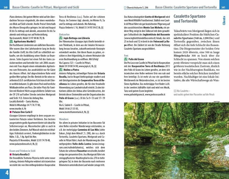 Jedes Kapitel des Reiseführers beginnt mit einer Doppelseite, auf der die Inhalte mit einer Übersichtskarte der Region, Highlights und Seitenverweisen vorgestellt werden. Farblich auf die Kapitel abgestimmte Seitenzahlkästchen erleichtern die Orientierung im Buch. Natürlich enthält der Reiseführer die bewährten und praktischen Tipps zu Reisefragen von A-Z. Im erweiterten Vorspann finden sich Übersichtsseiten mit Beschreibungen aller Regionen, eine Jahresübersicht zu Festen und Veranstaltungen, Routenvorschläge und persönliche Top-Tipps des Autors. Dazu gibt es ausführliche Informationen zu Geschichte, Kultur und Traditionen dieser Region. Ein kleine Sprachhilfe Italienisch erleichtert die Konversation vor Ort.