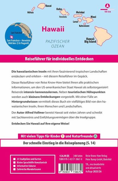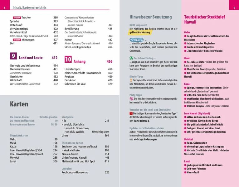 In dem aktuellen Reiseführer erhalten Reisende viele Tipps, um den richtigen Ort, den richtigen Zeitpunkt und die passende Unterkunft auf Hawaii zu finden. Ausführliche Informationen zu Geschichte, Kultur und Vulkanismus werden ergänzt durch Tipps zu Ausflügen, Wanderungen und Wassersport sowie durch praktische Karten und eine kleine Sprachhilfe Hawaiianisch.