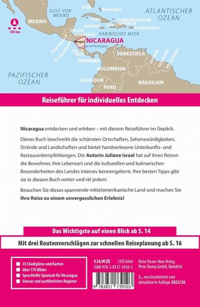 Warmherzig und freundlich, romantisch und abenteuerlich, faszinierend schön und berauschend ursprünglich - das alles ist Nicaragua. Dieser umfassende Reiseführer beschreibt ein Land mit unberührter Natur und einer vielfältigen Pflanzen- und Tierwelt. Imposante Vulkane durchziehen es von Nordwesten bis in den Süden, viele darunter sind aktiv und jeder hat seinen eigenen, unbändigen Charakter. Riesige Dschungelgebiete harren ihrer Erkundung, kristallklare Lagunen laden zum Baden ein, von indigenen Kulturen geprägte Inseln liegen geheimnisvoll inmitten des Nicaraguasees. Granada, León und Masaya versprühen den Charme kolonialer Städte und überall im Land trifft man auf das Erbe der prähispanischen Bevölkerung.