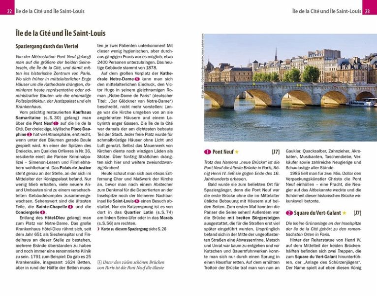 Dazu: kostenlose Web-App für Smartphone, Tablet und PC mit Stadtplan- und Satellitenansichten passend zum Text, Routenführung zu allen beschriebenen Sehenswürdigkeiten, Verlauf der Stadtspaziergänge, seitenbezogenen Updates nach Redaktionsschluss sowie einem Mini-Audiotrainer Französisch.