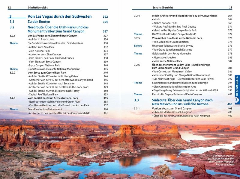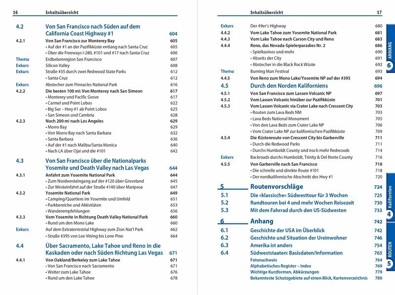 - Zusätzlich noch konkrete Routenvorschläge zum Nachfahren für einen 2- bis 4-wöchigen Roadtrip (mit den zurückgelegten Tagesdistanzen, Hinweisen zu Aktivitäten, Ausflugtipps sowie Angaben zu Unterkünften, Campgrounds und Einkaufsmöglichkeiten)