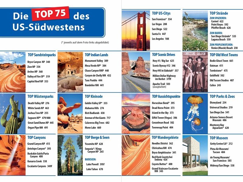 - Umfangreiche Citykapitel auch noch für weitere spannende Städte wie Santa Fe, Phoenix, Tucson, Reno oder Albuquerque