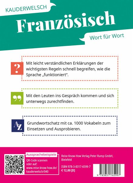 Dieser Kauderwelsch-Sprachführer Französisch unterstützt beim unkomplizierten Erlernen der Sprache, so dass sie beliebig im Alltag oder auf Reisen angewendet werden kann.