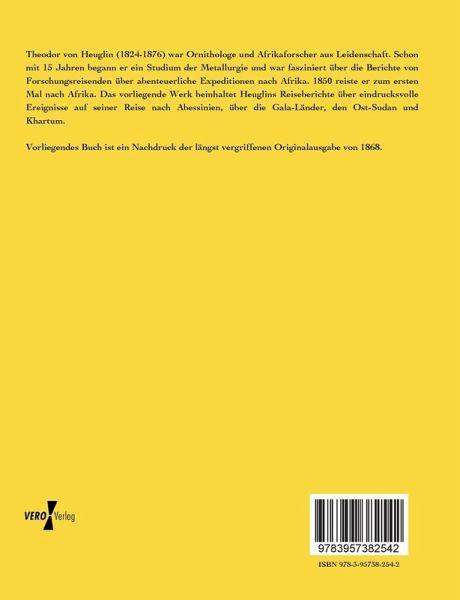 Theodor von Heuglin (1824-1876) war Ornithologe und Afrikaforscher aus Leidenschaft. Schon mit 15 Jahren begann er ein Studium der Metallurgie und war fasziniert über die Berichte von Forschungsreisenden über abenteuerliche Expeditionen nach Afrika. 1850 reiste er zum ersten Mal nach Afrika. Das vorliegende Werk beinhaltet Heuglins Reiseberichte über eindrucksvolle Ereignisse auf seiner Reise nach Abessinien, über die Gala-Länder, den Ost-Sudan und Khartum.