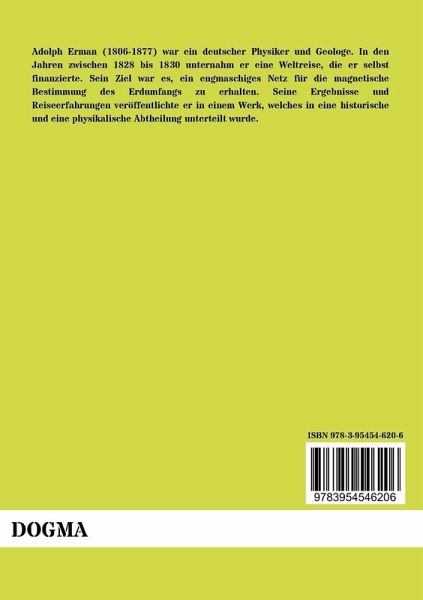 Adolph Erman (1806-1877) war ein deutscher Physiker und Geologe. In den Jahren zwischen 1828 bis 1830 unternahm er eine Weltreise, die er selbst finanzierte. Sein Ziel war es, ein engmaschiges Netz für die magnetische Bestimmung des Erdumfangs zu erhalten. Seine Ergebnisse und Reiseerfahrungen veröffentlichte er in einem Werk, welches in eine historische und eine physikalische Abtheilung unterteilt wurde.