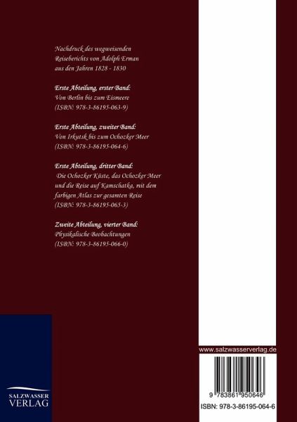 Der zweite Band des Reiseberichts von Adolph Erman aus dem Jahre 1839 beschreibt den Weg von Irkutksk über das aldanische Gebirge bis nach Ochozk.