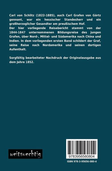 Der hier vorliegende Reisebericht stammt von der 1844-1847 unternommenen Bildungsreise des jungen Grafen, über Nord-, Mittel- und Südamerika nach China und Indien. In dem vorliegenden ersten Band schildert der Graf, seine Reise nach Nordamerika und seinen dortigen Aufenthalt.