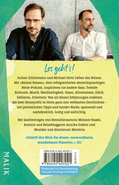Michael Dietz und Jochen Schliemann haben über hundert Länder bereist - fertig sind sie noch lange nicht. Im reichweitenstärksten deutschsprachigen Reisepodcast »Reisen Reisen« machen sie Lust aufs Entdecken, auf Perspektivwechsel, eben darauf, es einfach zu tun. Fremde Kulturen, Musik, Nachhaltigkeit, Essen, Alleinreisen, Glück, Gefahren, Scheitern: Von all diesen und vielen weiteren Erfahrungen erzählen die zwei Reiseprofis - mit persönlichen Tipps und Insider-Hacks, spannend und nachdenklich, lustig und aufrichtig.