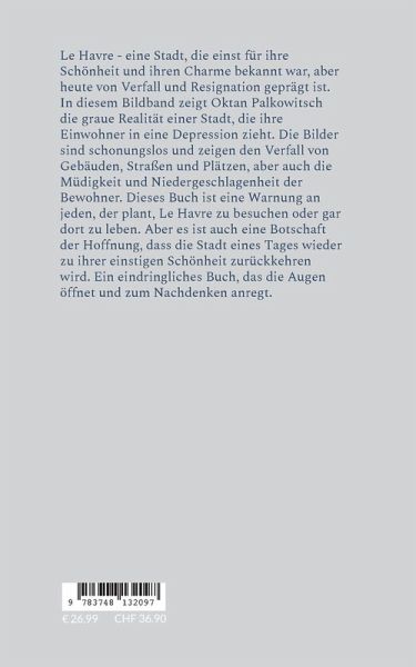 Le Havre - eine Stadt, die einst für ihre Schönheit und ihren Charme bekannt war, aber heute von Verfall und Resignation geprägt ist. In diesem Bildband zeigt Oktan Palkowitsch die graue Realität einer Stadt, die ihre Einwohner in eine Depression zieht. Die Bilder sind schonungslos und zeigen den Verfall von Gebäuden, Straßen und Plätzen, aber auch die Müdigkeit und Niedergeschlagenheit der Bewohner. Dieses Buch ist eine Warnung an jeden, der plant, Le Havre zu besuchen oder gar dort zu leben. Aber es ist auch eine Botschaft der Hoffnung, dass die Stadt eines Tages wieder zu ihrer einstigen Schönheit zurückkehren wird. Ein eindringliches Buch, das die Augen öffnet und zum Nachdenken anregt.