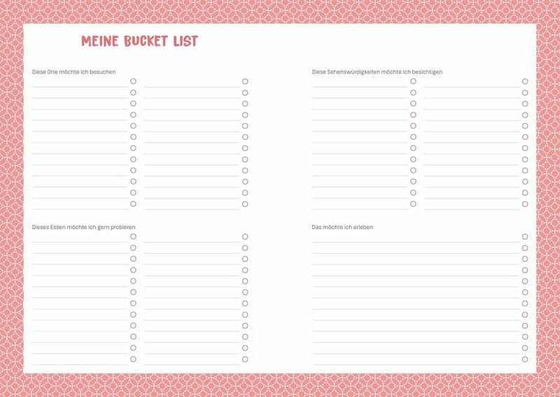 - Mit Vorlagen für Packliste, Budget-Plan, Bucket List & Co. zur Reisevorbereitung